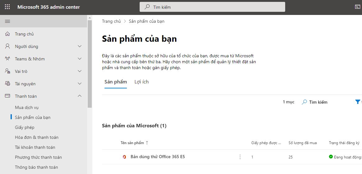 11 – Kiểm tra sản phẩm đảm bảo đăng ký thành công gói dịch vụ Microsoft 365 E5 cho doanh nghiệp