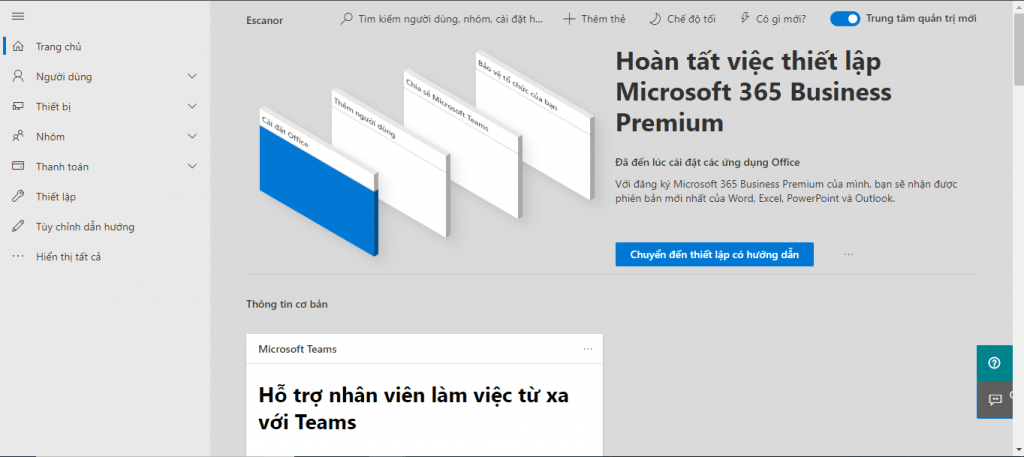 1 – Đăng nhập vào trang quản trị: admin.microsoft.com