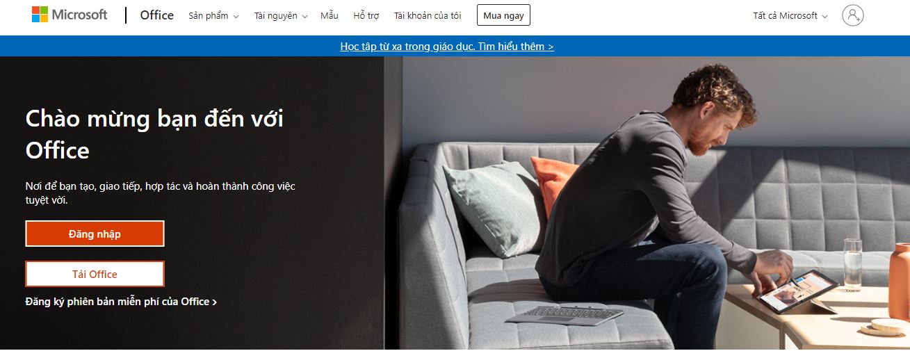 1 – Truy cập vào trang Portal Office 365 : https://www.office.com . Chọn [Đăng nhập]