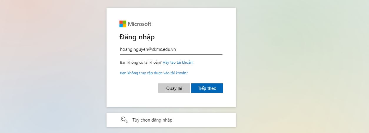 Đăng nhập tài khoản người dùng trên Portal Office 365