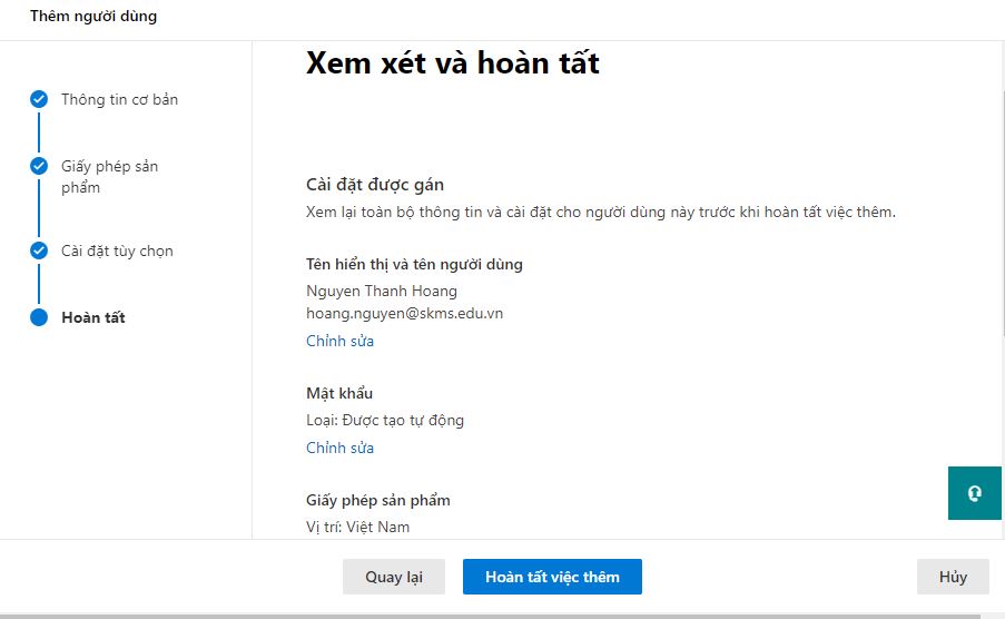 4 – Kiểm tra thông tin người dùng và hoàn tất